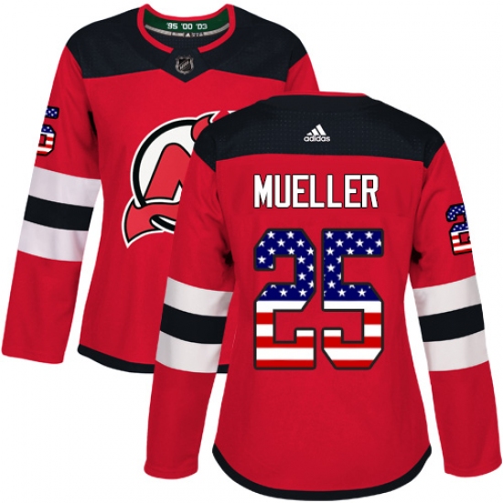 Home>NHL>New Devils Jersey>Mirco Mueller>Women's Adidas New Jersey Devils #25 Mirco Mueller Authentic Red USA Flag Fashion NHL Jersey