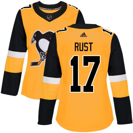 Women's Adidas Pittsburgh Penguins #17 Bryan Rust Authentic Gold Alternate NHL Jersey