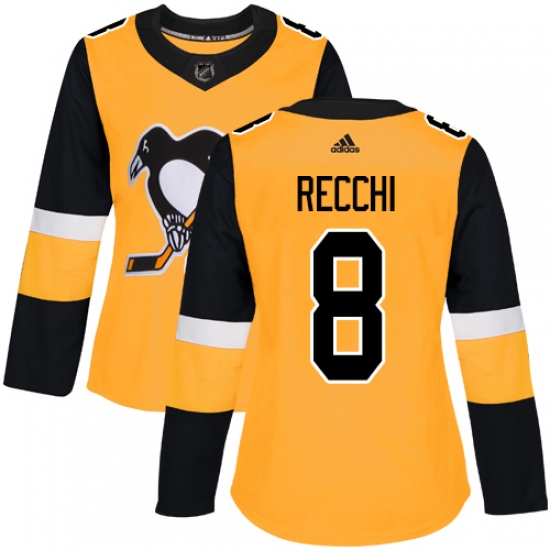 Women's Adidas Pittsburgh Penguins #8 Mark Recchi Authentic Gold Alternate NHL Jersey