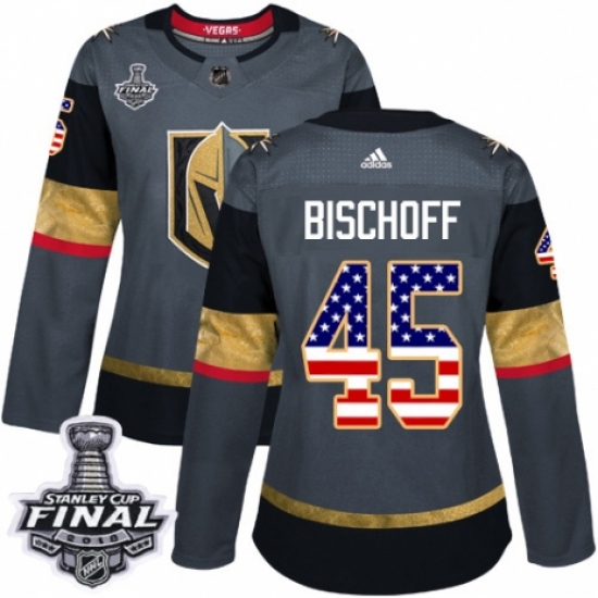 Women's Adidas Vegas Golden Knights #45 Jake Bischoff Authentic Gray USA Flag Fashion 2018 Stanley Cup Final NHL Jersey