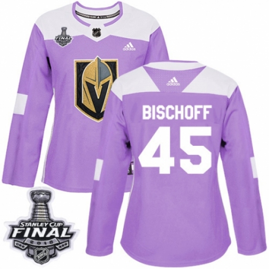 Women's Adidas Vegas Golden Knights #45 Jake Bischoff Authentic Purple Fights Cancer Practice 2018 Stanley Cup Final NHL Jersey