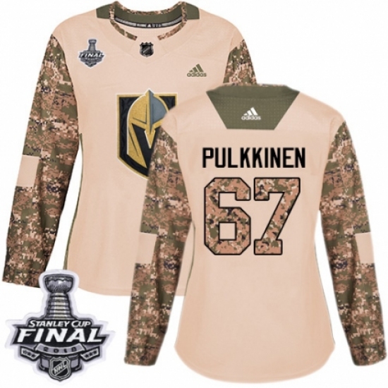 >Women's Adidas Vegas Golden Knights #67 Teemu Pulkkinen Authentic Camo Veterans Day Practice 2018 Stanley Cup Final NHL Jersey