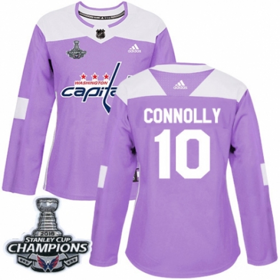 Women's Adidas Washington Capitals #10 Brett Connolly Authentic Purple Fights Cancer Practice 2018 Stanley Cup Final Champions NHL Jersey