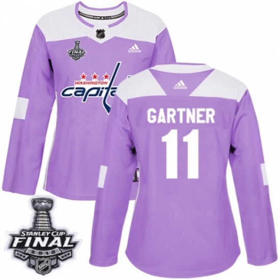 Women's Adidas Washington Capitals #11 Mike Gartner Authentic Purple Fights Cancer Practice 2018 Stanley Cup Final NHL Jersey