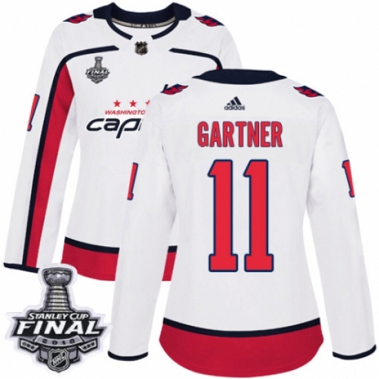 Women's Adidas Washington Capitals #11 Mike Gartner Authentic White Away 2018 Stanley Cup Final NHL Jersey