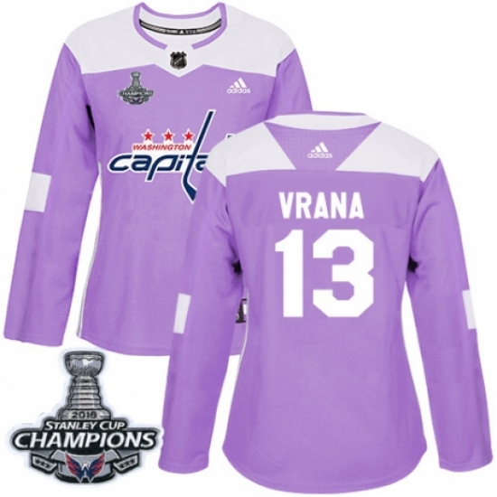 Women's Adidas Washington Capitals #13 Jakub Vrana Authentic Purple Fights Cancer Practice 2018 Stanley Cup Final Champions NHL Jersey