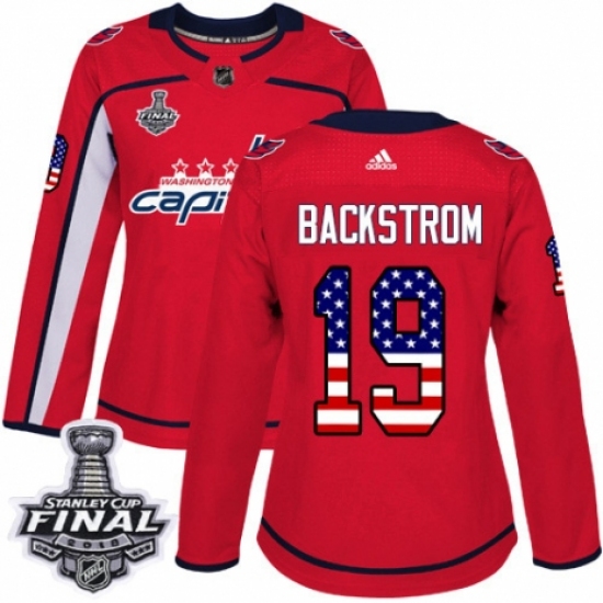 Women's Adidas Washington Capitals #19 Nicklas Backstrom Authentic Red USA Flag Fashion 2018 Stanley Cup Final NHL Jersey