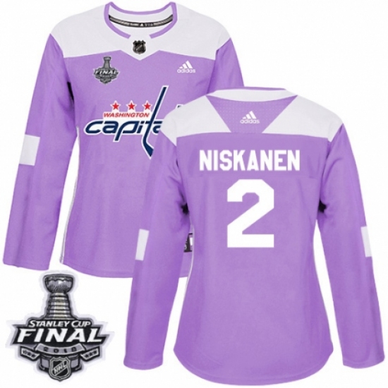 Women's Adidas Washington Capitals #2 Matt Niskanen Authentic Purple Fights Cancer Practice 2018 Stanley Cup Final NHL Jersey