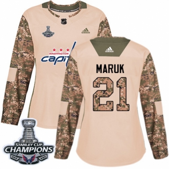 Women's Adidas Washington Capitals #21 Dennis Maruk Authentic Camo Veterans Day Practice 2018 Stanley Cup Final Champions NHL Jersey