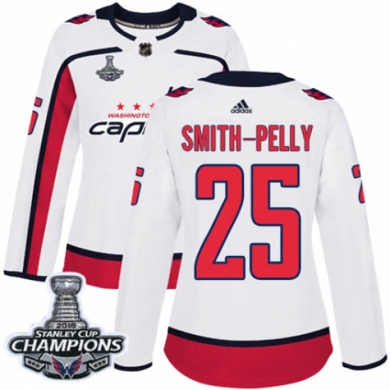 Women's Adidas Washington Capitals #25 Devante Smith-Pelly Authentic White Away 2018 Stanley Cup Final Champions NHL Jersey