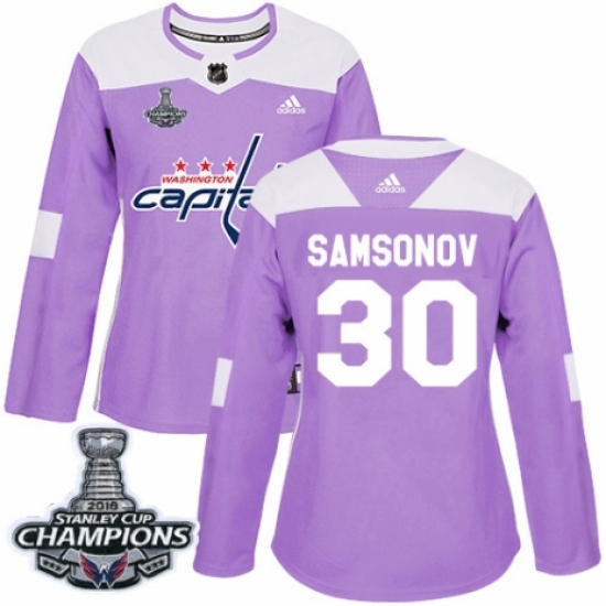 Women's Adidas Washington Capitals #30 Ilya Samsonov Authentic Purple Fights Cancer Practice 2018 Stanley Cup Final Champions NHL Jersey