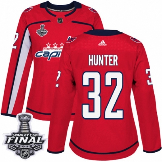 Women's Adidas Washington Capitals #32 Dale Hunter Authentic Red Home 2018 Stanley Cup Final NHL Jersey