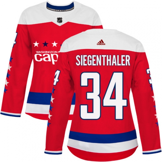 Women's Adidas Washington Capitals #34 Jonas Siegenthaler Authentic Red Alternate NHL Jersey
