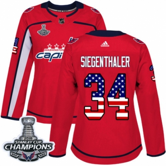 Women's Adidas Washington Capitals #34 Jonas Siegenthaler Authentic Red USA Flag Fashion 2018 Stanley Cup Final Champions NHL Jersey