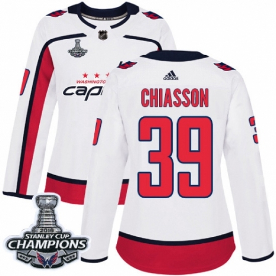 Women's Adidas Washington Capitals #39 Alex Chiasson Authentic White Away 2018 Stanley Cup Final Champions NHL Jersey