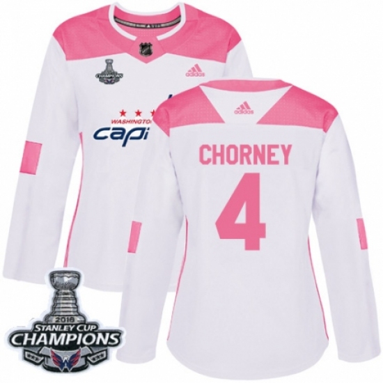 Women's Adidas Washington Capitals #4 Taylor Chorney Authentic White Pink Fashion 2018 Stanley Cup Final Champions NHL Jersey