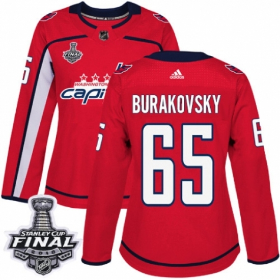 Women's Adidas Washington Capitals #65 Andre Burakovsky Authentic Red Home 2018 Stanley Cup Final NHL Jersey