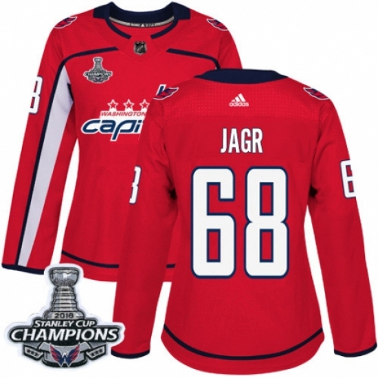 >Women's Adidas Washington Capitals #68 Jaromir Jagr Authentic Red Home 2018 Stanley Cup Final Champions NHL Jersey