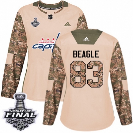 Women's Adidas Washington Capitals #83 Jay Beagle Authentic Camo Veterans Day Practice 2018 Stanley Cup Final NHL Jersey