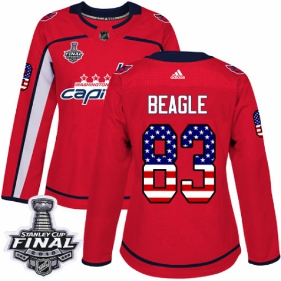 Women's Adidas Washington Capitals #83 Jay Beagle Authentic Red USA Flag Fashion 2018 Stanley Cup Final NHL Jersey