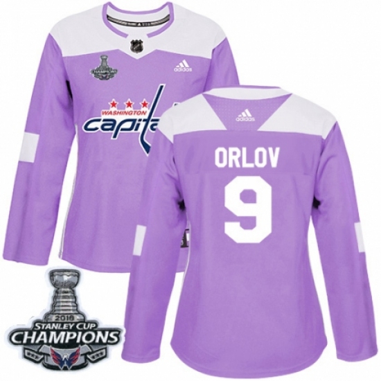 >Women's Adidas Washington Capitals #9 Dmitry Orlov Authentic Purple Fights Cancer Practice 2018 Stanley Cup Final Champions NHL Jersey
