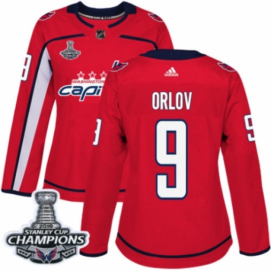Women's Adidas Washington Capitals #9 Dmitry Orlov Authentic Red Home 2018 Stanley Cup Final Champions NHL Jersey