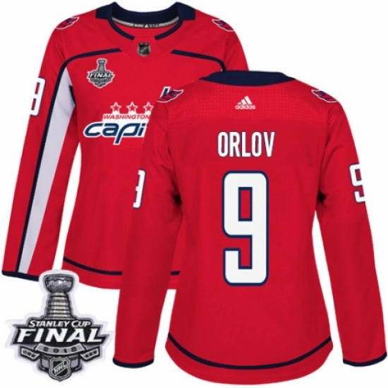 >Women's Adidas Washington Capitals #9 Dmitry Orlov Authentic Red Home 2018 Stanley Cup Final NHL Jersey