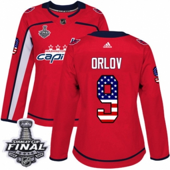 Women's Adidas Washington Capitals #9 Dmitry Orlov Authentic Red USA Flag Fashion 2018 Stanley Cup Final NHL Jersey