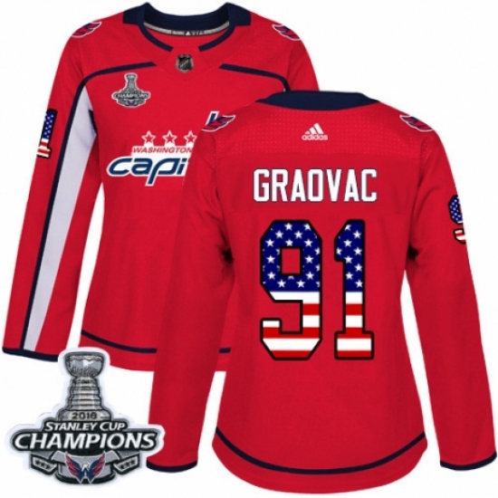 Women's Adidas Washington Capitals #91 Tyler Graovac Authentic Red USA Flag Fashion 2018 Stanley Cup Final Champions NHL Jersey