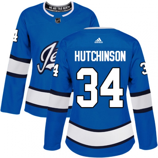 >Women's Adidas Winnipeg Jets #34 Michael Hutchinson Authentic Blue Alternate NHL Jersey