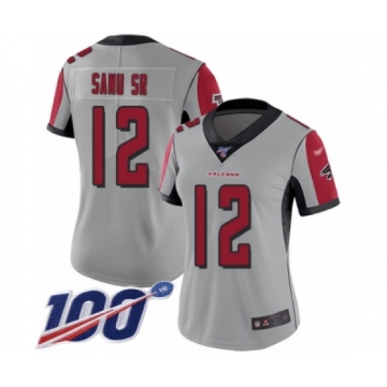 >Women's Atlanta Falcons #12 Mohamed Sanu Limited Silver Inverted Legend 100th Season Football Jersey