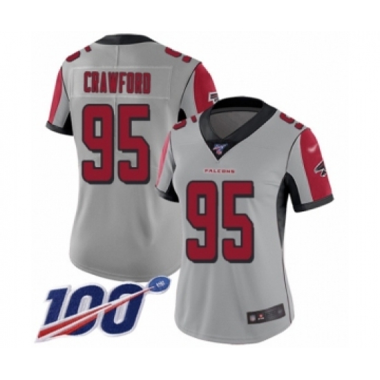 >Women's Atlanta Falcons #95 Jack Crawford Limited Silver Inverted Legend 100th Season Football Jersey