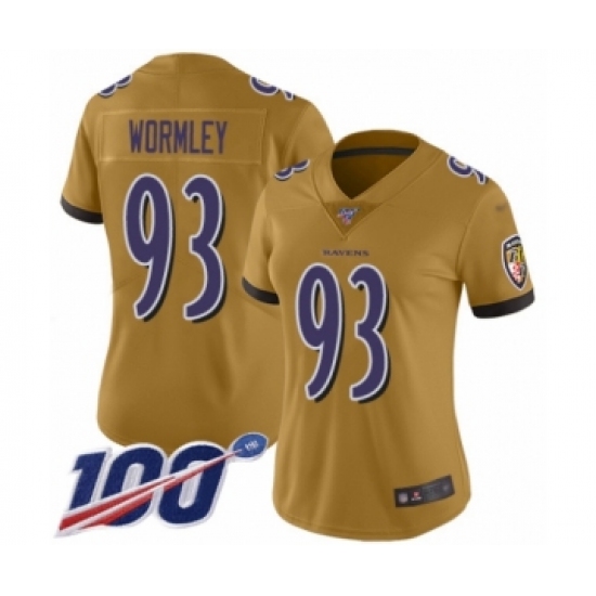 Women's Baltimore Ravens #93 Chris Wormley Limited Gold Inverted Legend 100th Season Football Jersey