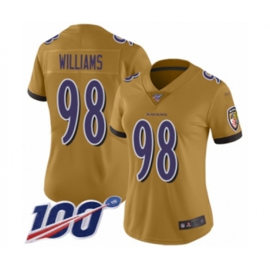 Women's Baltimore Ravens #98 Brandon Williams Limited Gold Inverted Legend 100th Season Football Jersey