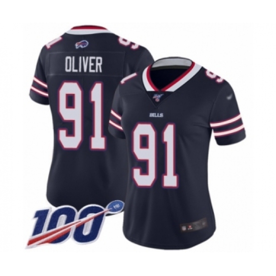 Women's Buffalo Bills #91 Ed Oliver Limited Navy Blue Inverted Legend 100th Season Football Jersey