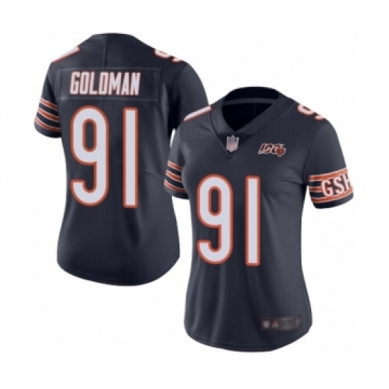 Women's Chicago Bears #91 Eddie Goldman Navy Blue Team Color 100th Season Limited Football Jersey