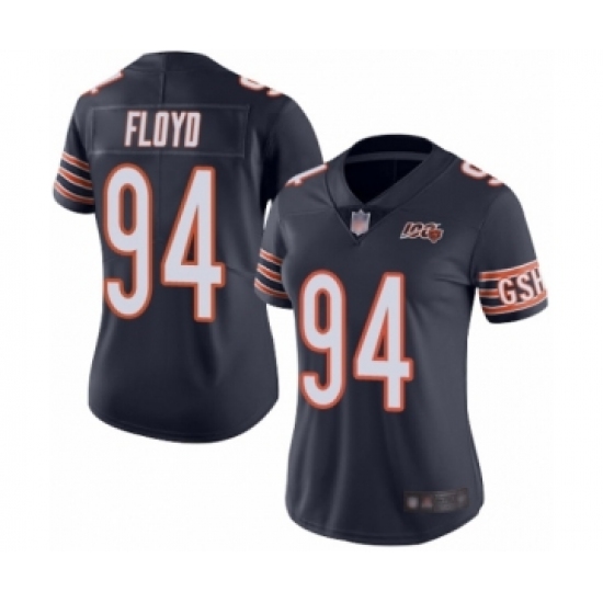 >Women's Chicago Bears #94 Leonard Floyd Navy Blue Team Color 100th Season Limited Football Jersey
