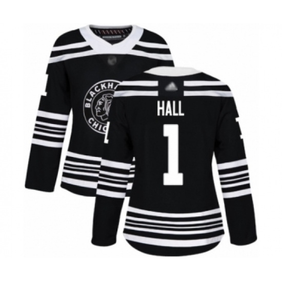 Women's Adidas Chicago Blackhawks #1 Glenn Hall Authentic Black 2019 Winter Classic NHL Jersey