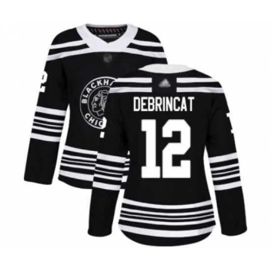 Women's Chicago Blackhawks #12 Alex DeBrincat Authentic Black Alternate Hockey Jersey