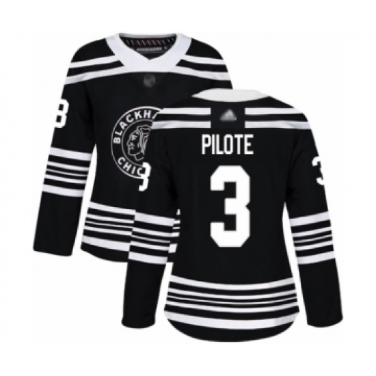 Women's Chicago Blackhawks #3 Pierre Pilote Authentic Black Alternate Hockey Jersey