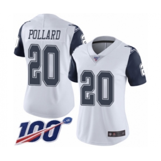 Women's Dallas Cowboys #20 Tony Pollard Limited White Rush Vapor Untouchable 100th Season Football Jersey