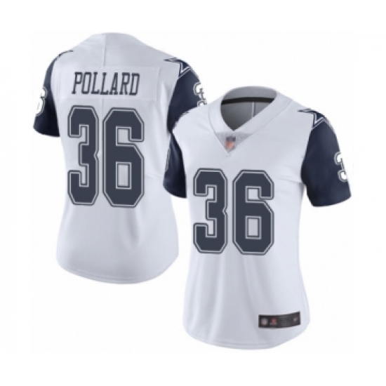 >Women's Dallas Cowboys #36 Tony Pollard Limited White Rush Vapor Untouchable Football Jersey