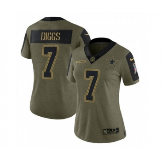 Women's Dallas Cowboys #7 Trevon Diggs Olive Salute To Service Limited Stitched Jersey(Run Small)