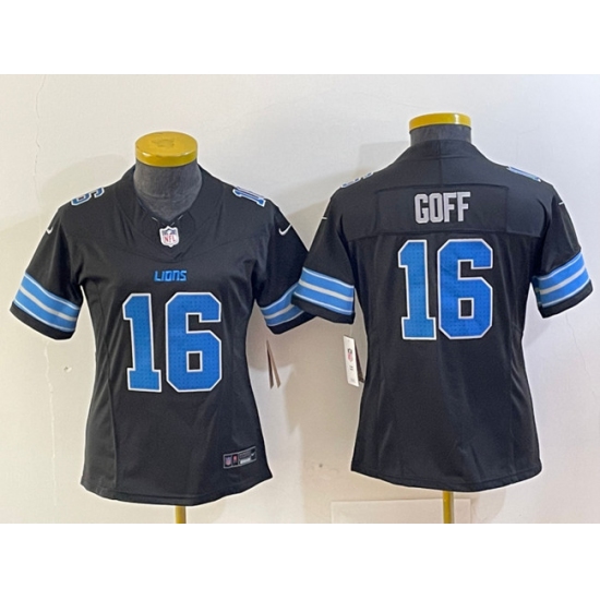Women's Detroit Lions #16 Jared Goff Black 2nd Alternate Stitched Jersey(Run Smaller)