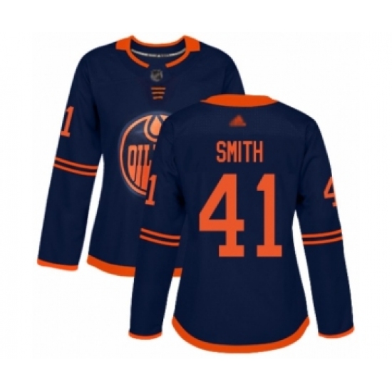 Women's Edmonton Oilers #41 Mike Smith Authentic Navy Blue Alternate Hockey Jersey