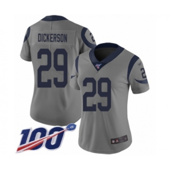 >Women's Los Angeles Rams #29 Eric Dickerson Limited Gray Inverted Legend 100th Season Football Jersey