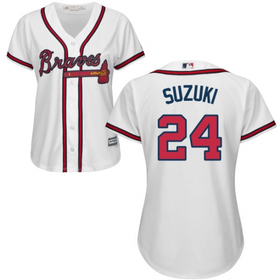 Home>MLB>Atlanta Braves>Kurt Suzuki>Women's Majestic Atlanta Braves #24 Kurt Suzuki Authentic White Home Cool Base MLB Jersey