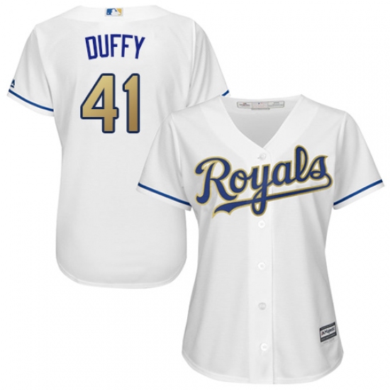 Home>MLB>Kansas City Royals>Danny Duffy>Women's Majestic Kansas City Royals #41 Danny Duffy Authentic White Home Cool Base MLB Jersey