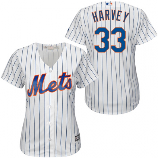 Home>MLB>New York Mets>Matt Harvey>Women's Majestic New York Mets #33 Matt Harvey Replica White/Blue Strip MLB Jersey