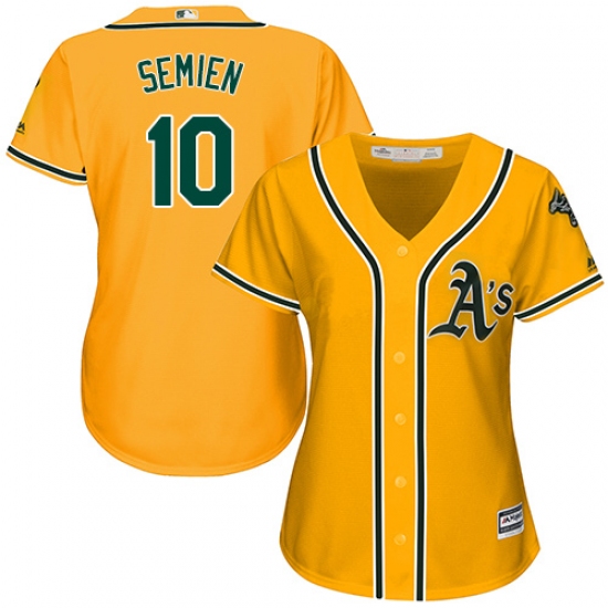 Women's Majestic Oakland Athletics #10 Marcus Semien Replica Gold Alternate 2 Cool Base MLB Jersey